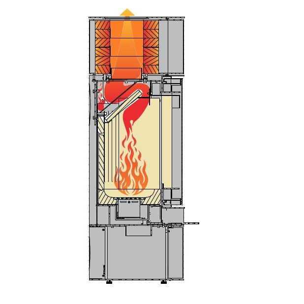 - A tüzelőanyag többirányú levegőztetési rendszere és a háromirányú füstgázeltérítés biztosítja a tökéletes égést és hatékonyságot.