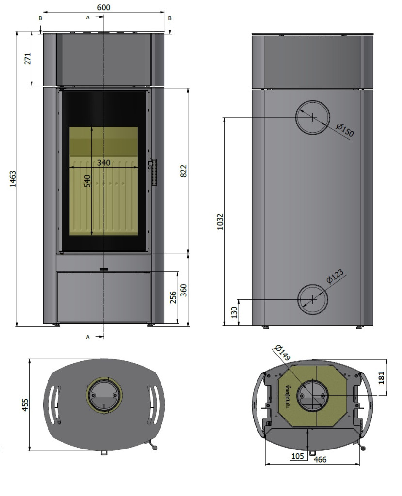 - A tüzelőanyag többirányú levegőztetési rendszere és a háromirányú füstgázeltérítés biztosítja a tökéletes égést és hatékonyságot.