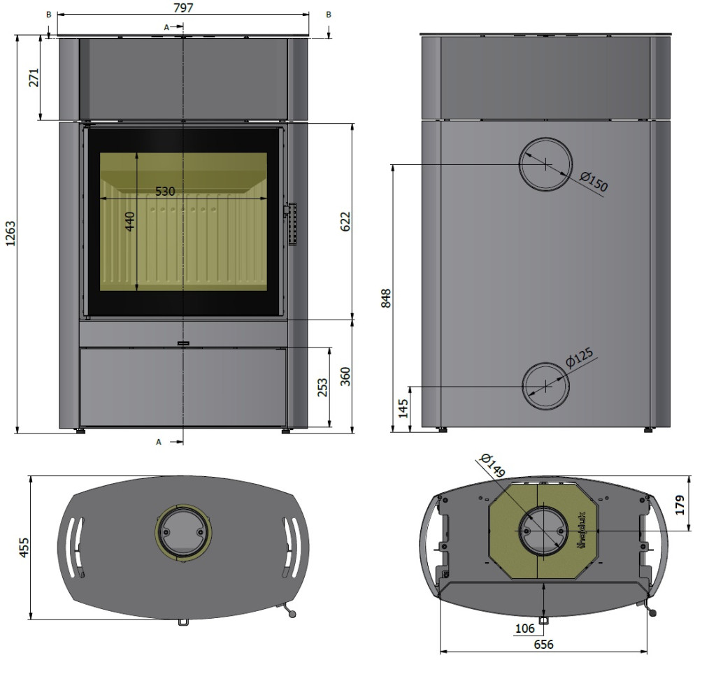 - A tüzelőanyag többirányú levegőztetési rendszere és a háromirányú füstgázeltérítés biztosítja a tökéletes égést és hatékonyságot.